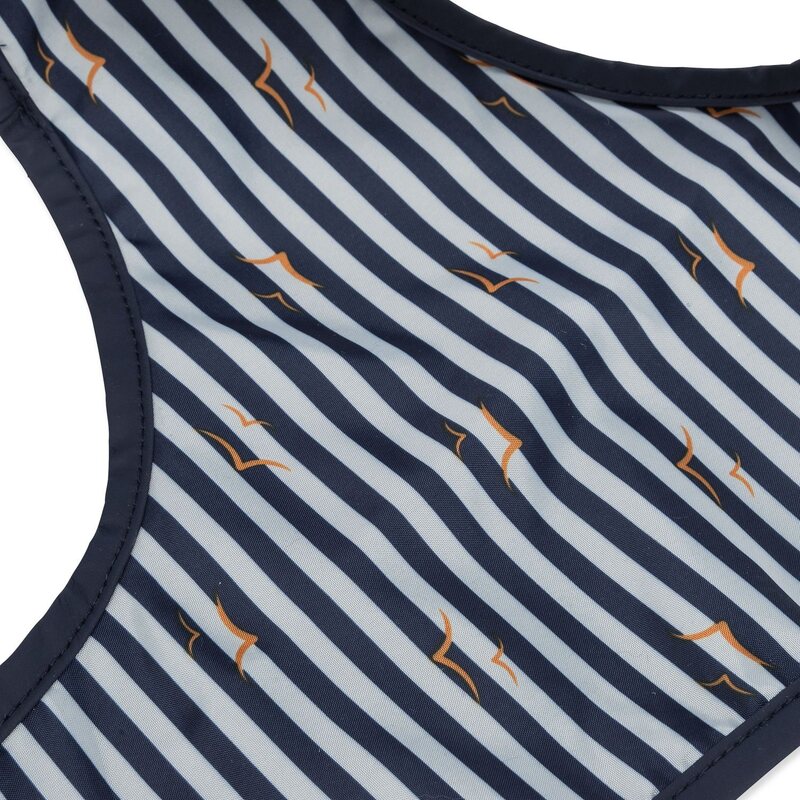 Pláštenka s vyšším krkom. Nastaviteľná okolo krku a cez brucho.