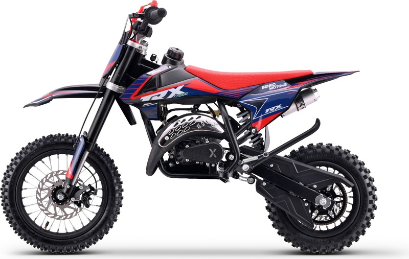 Beneo Motors CROSS TRX 60 cm3 Veková hranica: od 5 rokov VÝKON: 2,75 kW / 3.7 hp Zaži dobrodružstvo, aké sa nezabúda! Beneo Motors CROSS TRX je viac než len detský motocross – je to vstupenka do sveta rýchlosti, rovnováhy a zábavy. Tento výkonný, bezpečný a ľahko ovládateľný stroj je navrhnutý pre mladých jazdcov, ktorí chcú objaviť skutočný pôžitok z jazdy v teréne, získať istotu a rozvíjať svoje zručnosti na motorke. Ľahká konštrukcia a jednoduché ovládanie: Vďaka nízkej hmotnosti a kompaktným rozmerom sa CROSS TRX správa obratne a ľahko aj v rukách menších jazdcov. Je ideálny pre deti vo veku 5 – 10 rokov, ktoré sa učia ovládať motorku s istotou. Bezpečnosť na prvom mieste: Spoľahlivé kotúčové brzdy vpredu aj vzadu, ochranný kryt reťaze, kryt výfuku a nastaviteľný obmedzovač akcelerácie zaručujú kontrolovanú a bezpečnú jazdu. Rodičia môžu jednoducho prispôsobiť výkon schopnostiam svojho dieťaťa. Jednoduché štartovanie: Vďaka systému Easy Start sa motor naštartuje hladko a bez námahy – stačí jemné potiahnutie. Ideálne riešenie pre mladých jazdcov, ktorí s motorkou začínajú. Odpruženie a stabilita: Kvalitná invertovaná predná vidlica a zadný monoshock odpruženie pohlcujú nerovnosti terénu a poskytujú stabilitu aj pri dynamickej jazde. Štýlový, spoľahlivý a plný energie: CROSS TRX 60 cm3 je ideálnym spoločníkom pre malých pretekárov, ktorí túžia po dobrodružstve, rýchlosti a slobode – vždy s dôrazom na bezpečnosť a kvalitu.Rozmery: