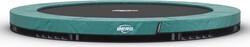Trampolíny radu Champion. Zelená farba ochranného goliera, galvanizované rámy zvonka i vo vnútri, pružiny majú tvar dvojitého kužeľa, pružné lôžka prepúšťa vodu.