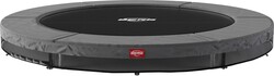 Trampolína základnej rady Favorit. Šedá farba ochranného goliera, galvanizované rámy vonku i vo vnútri, pružiny majú tvar dvojitého kužeľa, pružné lôžka prepúšťa vodu.