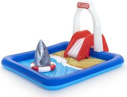 Deti si zamilujú dohliadanie na svoju malú pláž z herného centra Lifeguard Tower od Bestway®! Toto herné centrum s množstvom možností hry, ktoré vaše deti zabavia na celé hodiny, je perfektným doplnkom do vašej záhrady. Po pripojení záhradnej hadice strieka voda z veže na deti, ktoré sa hrajú v bazéne. K dispozícii je tiež odnímateľná šmykľavka s nafukovacím vankúšom pre väčšie pohodlie. Súčasťou je aj realisticky potlačený žralok z vreca Bop Bag, ktorý pláva na vode. Deti sa s ním môžu hrať v hernom centre, udierať ho a kopať alebo ho vyniesť a používať vonku. Keď sa deň skončí a je čas zbaliť sa, vylejte vodu cez ľahko použiteľný vypúšťací ventil a herné centrum zložte.- Rozmery po nafúknutí: 234 x 203 x 129 cm