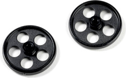 Ľahké plastové kolieska pre RC halové modely lietadiel. priemer 25mm, šírka 3mm, náboj kolesa 5mm, otvor 1,2mm. 2 ks v balení.