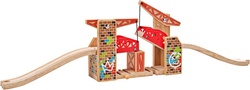 Dvojitý zdvíhací most - obe strany sa zdvíhajú a ponechávajú dostatok priestoru na súbežné prechádzanie 2 vlakov. Alebo sklopte boky, aby vlak mohol prejsť cez vrchol! Väčšina ostatných značiek drevených železníc je s Bigjigs Rail kompatibilná.