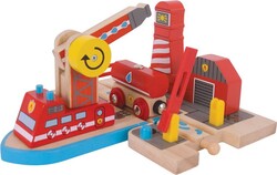 Hasičský čln je vzrušujúcim doplnkom každej drevenej vlakovej súpravy a má pohyblivú požiarnu hadicu a priestor na prepravu vozidla s vynímateľnou nádržou na vodu, ktorú je možné naložiť na čln.