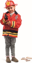 Súčasťou tejto detskej sady je jasne červená hasičská bunda s pruhovanými rukávmi a odznakom, drevený hasiaci prístroj, vysielačka a megafón. Zapínanie je na suchý zips pre ľahké obliekanie a vyzliekanie. Helma je nastaviteľná, obvod hlavy 49-55 cm. Kostým bol testovaný podľa najnovších predpisov EN71.