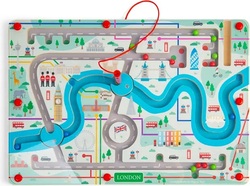 Vydajte sa na prechádzku rušnými ulicami Londýna s magnetickým bludiskom! Pomocou červeného magnetického pera môžu deti viesť 15 magnetických guličiek bludiskom. Poznajú ikonické pamiatky, ako je Buckinghamský palác, London Eye a Tower Bridge, alebo sa môžu vydať na prechádzku po rieke Temžu a otáčaním magnetických koliesok prepínať, kadiaľ budú pokračovať ďalej.