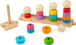 Jedinečná nasadzovacia hračka s výberom farebných tvarov a tvárí, ktoré sa nasadzujú na päť samostatných tyčí. Každá tyč stojí na malom drevenom dieliku skladačky, ktorý môžu deti spojiť dohromady. Môžu kombinovať farby, tvary a tváre – fantázii sa medze nekladú! Táto hračka učí deti rozpoznávaniu farieb a tvarov, učí ich schopnosti riešenia problémov a rozvíja ich obratnosť.