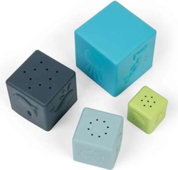 Kocky sú tiež vhodné do vody. Malí milovníci vody sa zabavia naberaním a vylievaním vody a sledovaním, ako preteká cez otvory, ktoré sú umiestnené na základni 3 kociek. Týmto sa učia, ako funguje príčina a následok.