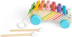 Pochodujte do rytmu s týmto hravým xylofónom. 2 drevené paličky, 8 farebných klávesov a 4 drevené kolieska umožňujú deťom robiť hudbu kdekoľvek, pretože vďaka praktickej šnúre slúžia tiež ako ťahacia hračka. Vďaka tomuto nástroju môže dieťa objavovať svoje nadanie.