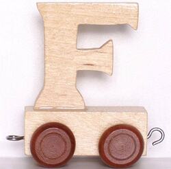 Drevený vágónik na kolieskach s písmenom F.