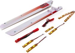 Súčasťou balenia je balenie LED pásikov pre umiestnenie na rám a chvostový stabilizátor, plastové rotorové listy s nainštalovaným osvetlením, prepojovacia kabeláž pre trup aj na zadný stabilizátor