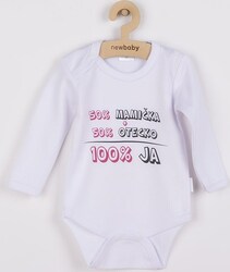 Originálne bavlnené dojčenské body s dlhým rukávom New Baby, s vtipným nápisom 50% MAMIČKA + 50% OTECKO - 100% JA.