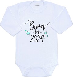 Originálne bavlnené dojčenské body s dlhým rukávom New Baby s nápisom Born in 2024.