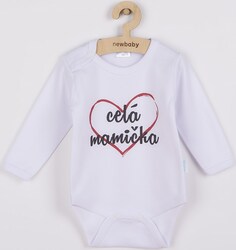 Originálne bavlnené dojčenské body s dlhým rukávom New Baby, s vtipným nápisom celá mamička. Farby použité k potlači sú certifikované a vhodné pre bábätká. Je vyrobené z príjemného a kvalitného materiálu, v ktorom sa bude Vaše bábätko cítiť príjemne. Body má zapínanie na cvočky na ramienku a medzi nožičkami, čo uľahčuje obliekanie a prebaľovanie. Doprajte Vášmu bábätku vyniknúť v originálnom body.