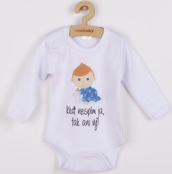 Originálne bavlnené dojčenské body s dlhým rukávom New Baby, s vtipným nápisom Keď nespím ja, tak ani vy! A obrázkom roztomilého chlapčeka.