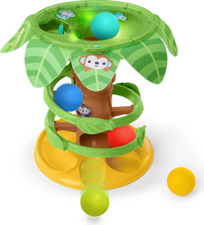 Zaveďte učenie sa príčin a následkov s viac ako 50 melódiami, zvukmi a svetlami, ktoré sa aktivujú pri púšťaní loptičiek alebo stláčaní tlačidiel. Loptičky bezpečne pristávajú na priloženej základni, ktorá funguje buď ako držiak na loptičky, alebo ako uvoľňovač lopty.