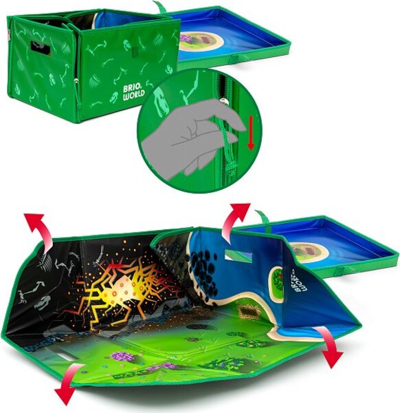 Objavte svet dinosaurov so sadou Dinosaur Deluxe. Táto 45-dielna vlaková súprava ponúka celý svet zábavy s dinosaurami, obsahuje sopku, ktorá vybuchuje so svetelnými, zvukovými a realistickými parnými efektmi, ako aj osem hravých dinosaurov v rôznych žiarivých farbách s pohyblivými končatinami a magnetmi BRIO na interakciu s okolitým svetom. Súprava obsahuje aj praktický úložný box, ktorý sa premení na podložku na hranie.