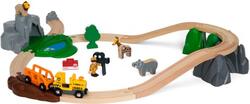 26 dielna drevená vlaková súprava Safari vrátane parného vlaku, tratí, zvierat, pohyblivého rangera a krajiny.