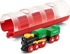 Parný vlak BRIO má klasický vzhľad a vystihuje obdobie pary. Parná lokomotíva s červenými kolesami prejde trať tunelom, rovnako ako v dobách svojej najväčšej slávy. Užite si zábavnú hru so všetkými tromi tunelmi a vlakmi - nákladným, osobným a parným (predajné jednotlivo). Tunel a vlak je možné kombinovať s ľubovoľnou železničnou traťou BRIO. Hračky BRIO sú vysoko kvalitné, vytvorené odborníkmi s dôrazom na bezpečnosť súčiastok.