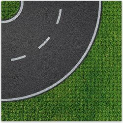 Tematická podložka na stavanie – zákruta je dizajnovo spracovaná hracia podložka, ktorá vďaka svojmu unikátnemu grafickému prevedeniu ponúka všetkým staviteľom a milovníkom tohto druhu stavebníc z plastových kociek, realistickejší pocit z ich finálnych stavieb.