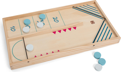 Stolná hra pre 2 hráčov od 6 rokov. V prvej hre je cieľom vstreliť svoje 4 žetóny na políčko s najvyšším číslom. V druhej hre víťazí hráč, ktorý ako prvý vstrelí 7 gólov pukom do bránky pomocou posunovača. Hra je navrhnutá tak, aby bola odolná a prenosná. Môžete si ju vziať so sebou do školy, na piknik alebo na akúkoľvek akciu, kde si chcete užiť túto zábavnú hru.