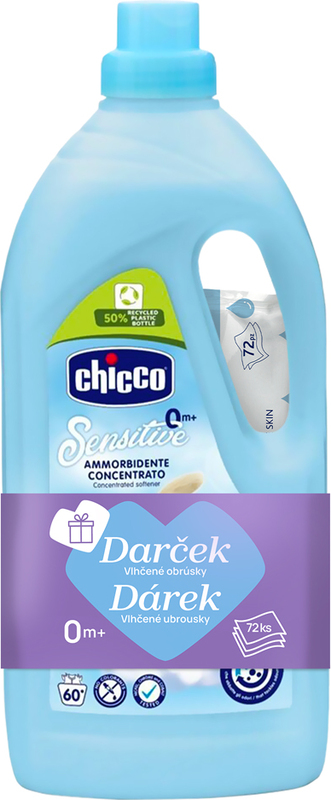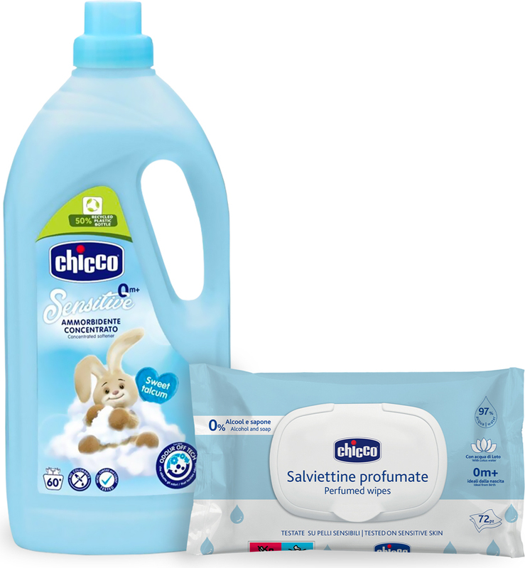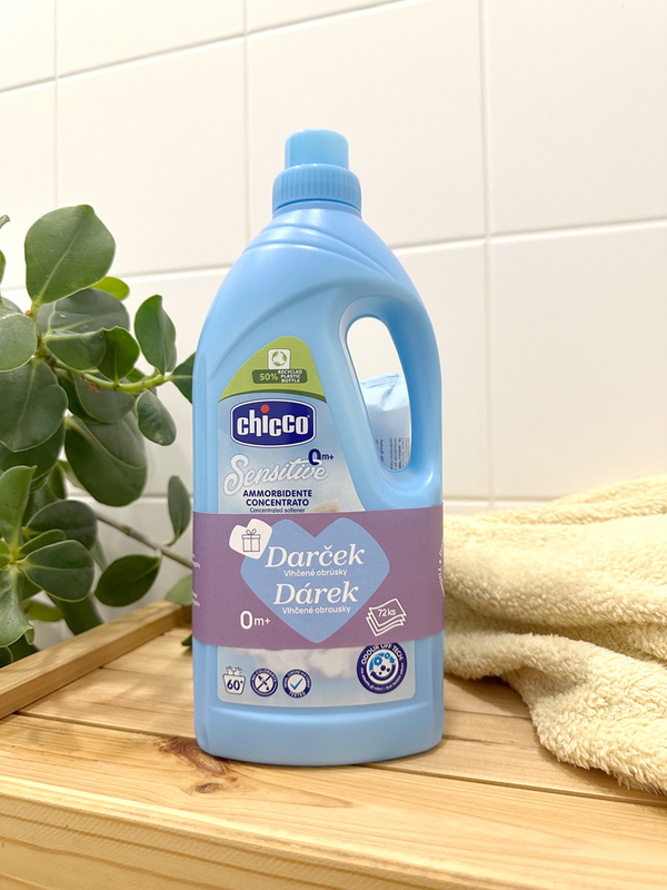 CHICCO Aviváž koncentrovaná Sladký Púder 1,5 l, 60 pranie + vlhčené obrúsky 72 ks zadarmo