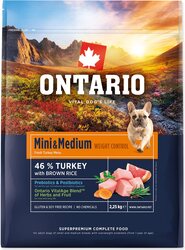 Krmivo Ontario Mini & Medium Weight Control Turkey & Brown Rice 2,25kg