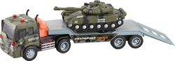 Vojenský kamión s tankom na batérie. Kamión svieti a vydáva zvuky.