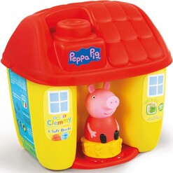 Krásny kýblik v tvare domčeka Peppa Pig obsahuje 6 mäkkých CLEMMY kociek navrhnutých tak, aby si deti mohli bezpečne hrať.