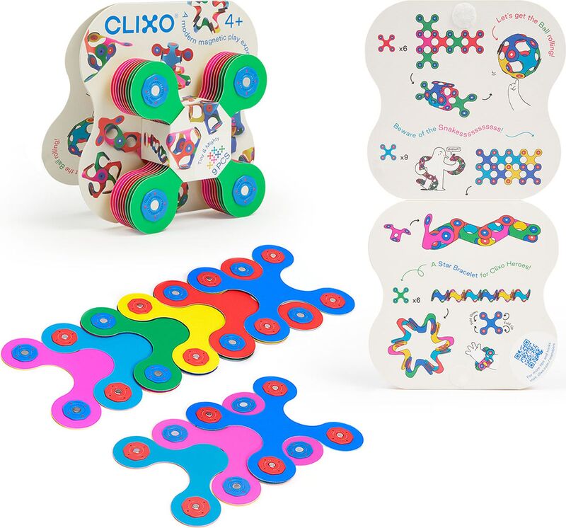 CLIXO Tiny & Mighty - 9 kusov je flexibilná, veľmi ľahká, magnetická stavebnica zo syntetického papiera, vo všetkých farbách dúhy, ktorá je inšpirovaná origami a zároveň je to skvelá Montessori hračka. Táto stavebnica je založená na princípe spájania rôznych tvarov a dielikov prichytením červených a modrých magnetov k sebe. Sada Tiny & Mighty umožňuje postaviť až 100 rôznych stavieb a stavať také kombinácie, ako je napríklad most, had, húsenica, veterník, náramok, miska alebo kotúľajúci sa loptička. Inšpirácie pre rôzne stavby nájdete vo vnútri papierového balenia. V tomto zázračnom balení vreckovej veľkosti sa skrýva svet zábavných objavov! Táto sada sa skvele hodí aj ako doplnok k akejkoľvek inej sade.