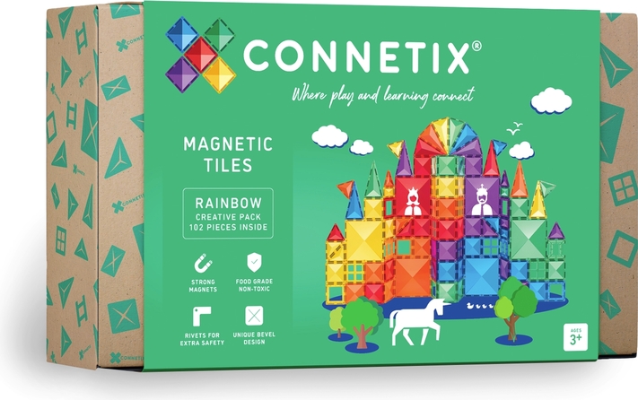 Rozšírte svoju zbierku a doplňte svoj Conntetix Kreatívny balíček RAINBOW so 102 dielikmi o Connetix Štartovací balíček RAINBOW so 60 dielikmi a Connetix Balíček štvorcov RAINBOW so 42 dielikmi, aby ste nazbierali každý tvar v každej farbe – alebo posuňte svoju magnetickú hru na vyššiu úroveň s naším jedinečným Connetix Balíčkom Guľôčková dráha RAINBOW s 92 dielikmi!