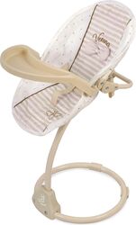 DeCuevas 51578 Multifunkčná jedálenská stolička a hojdačka pre bábiky 3 v 1 Verona 2024 patrí do rovnomennej kolekcie, ktorá je novinkou roku 2024 a ponúka nielen spomínané kočíky, ale aj iné doplnky pre malé slečny a ich bábiky. Táto decentná kolekcia je celá nesená v jemných pastelových prírodných farbách aj vzoroch. Kombinácia svetlo béžovej a bielej s roztomilými bodkami alebo prúžkami dopĺňa svetlo hnedé úzke lemovanie, ktoré zdôrazňuje dokonalosť tvarov a krásne ladí s hnedými madlami kočíkov. Prírodný štýl kolekcie podčiarkujú aplikácie mašličiek zobrazujúce okvetné lístky a drobné výšivky včeličiek.