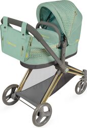 DeCuevas 81773 Skladací kočík pre bábiky 3 v 1 s taškou Capriccio 2025 - 73 cm z rovnomennej kolekcie, ktorá je novinkou roku 2025, je vďaka vyššej rukoväti a kombinovanej funkcii hlbokého a športového kočíka skôr vhodný pre slečny predškolského veku. Obdiv si tento kočík právom zaslúži za svoj dizajn, ktorý dokonale kopíruje dnešné moderné reálne detské kočíky celosvetovo známych značiek, ako je napríklad Cybex Priam. Výhodou je aj odnímateľná prenosná vanička, v ktorej je možné bezpečne prenášať bábiku. Po zložení nezaberá veľa miesta a je praktický aj na prevoz autom. Táto úžasná kolekcia Capriccio nie je nová len svojou nezameniteľnou modernou mentolovo zelenou farbou, ale aj svojim ozdobným spracovaním. Ide o imitáciu úpletu rafinovane kombinovaného s hladkou modernou látkou. Rám a podvozok kočíkov tvorí tmavo šedá so zlatými prvkami, ktoré sú vkusne uplatnené v podobe zlatých zipsov a výšivky Capriccio na textilnej časti kočíkov a doplnkovej taške. Kolekcia Capriccio ponúka niekoľko rôznych druhov kočíkov. Nádherný španielsky dizajn, precízne spracovanie. Skladací model, veľmi ľahká manipulácia počas samotnej hry. Materiál: kov, plast, textil. Balené v krabici vo farbách kolekcie. Odporúčaný vek od 3 rokov.