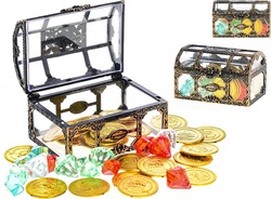 Truhla s pokladom imitáciou 30 ks zlatých mincí a 30 ks diamantov.