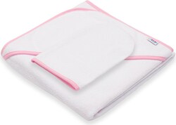 Detská froté osuška s kapuckou New Baby BASIC 80x80 bielo-ružová