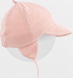 Letná mušelínová čiapočka so šiltom New Baby. Čiapočka ochráni hlavičku pred prudkým slnkom a vďaka šiltu, ktorý urobí tieň nespáli tváričku a chráni oči dieťaťa pred slnkom. Je krásne tvarovaná na ušká, zaväzuje sa na šnúrky, netlačí a bude dobre držať na hlavičke bábätka.