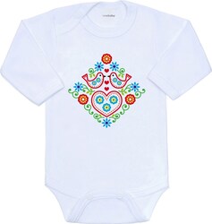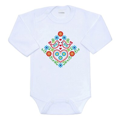 Originálne, štýlové a pohodlné detské body s nádhernou folklórnou potlačou New Baby, dokonale spája tradíciu s moderným dizajnom. Ideálna voľba pre malých milovníkov ľudovej tradície, ktorí ocenia kvalitné materiály a jedinečný vzhľad. Folklórny vzor inšpirovaný tradičnými motívmi dodá vášmu dieťatku šmrnc.