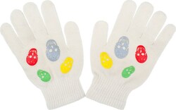 Nádherné detské zimné úpletové rukavičky New Baby. Rukavičky majú sťahovací pružný lem. Rukavičky zdobia obrázky farebných lebiek.