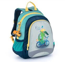 Detský batôžtek z kolekcie CHILI BABY s motívom krokodíla, veľkosť vhodná pre deti od dvoch rokov s bezpečnostnými reflexnými prvkami, pohodlné nastaviteľné popruhy, polstrovaný chrbtový systém, hlavná komora, predná kapsa, elastická kapsa na pitie.