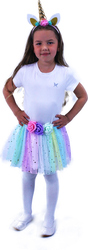 Roztomilá saténová sukienka TUTU je zdobená farebným tylom s dekorom hviezdičiek.