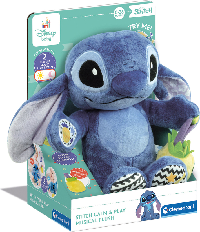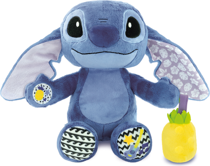 Plyšová hračka s multisenzorickými prvkami disponuje pestrými vzormi a materiálmi. Stlačením tlačidla si vaše dieťa môže vypočuť melódie, detské riekanky a rôzne zvukové efekty. Stitch spieva svoje typické havajské melódie.