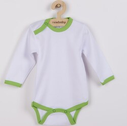 Bavlnené dojčenské body s dlhým rukávom a farebným lemom New Baby.