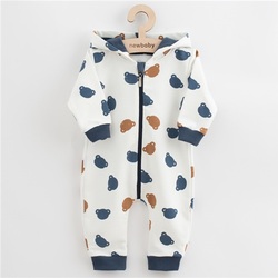 Roztomilý a praktický overal s kapucňou New Baby Little One. Overal je celopotlačený medvedíkmi, má zapínanie na zips po celej dĺžke a pružné lemy na rukávoch a nohavičkách.