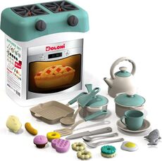 S hrou Kuchynka od TM "Doloni" sa dieťa naučí ukladať taniere, používať príbory a naaranžovať jedlo na tanieri. Všetky položky sú v plastovom boxe, ktorý má v hornej časti sporák, na ktorom si môžete uvariť svoje prvé chody.