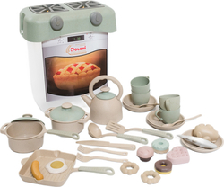 Kitchen-Box DOLONI je kompaktná súprava pre malých kuchárov, ktorá poskytne hodiny vzrušujúcej hry. Táto kuchyňa je vyrobená z materiálov šetrných k životnému prostrediu a obsahuje všetky potrebné atribúty na simuláciu varenia: riad, hrnce, lyžice a ďalšie príslušenstvo.