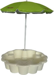 Pieskovisko v tvare kvetu s 2 vnútornými sedadlami a slnečníkom.