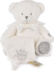 Plyšový medvedík je ideálnym darčekom pre deti už od narodenia. Súčasťou medvedíka je mäkučká dečka, ktorá je skvelá na maznanie a môže pomôcť bábätku ľahšie zaspať. Dečku je možné jednoducho schovať do bruška medvedíka, čo je praktické pri cestovaní alebo ukladaní. Je ozdobená jemnou výšivkou značky Doudou a saténovými stuhami s láskyplnými odkazmi vo francúzštine, ktoré dodávajú každému maznaniu ešte nežnejší pocit. Medvedík má štýlové šedé srdiečko na labke, roztomilý biely golier pod krkom a hebké šedé labky, ktoré mu dodávajú nežný a priateľský vzhľad.Vďaka jemným, trendovým farbám a kvalitným, hebkým materiálom je ideálny pre malé deti, ktorým prináša pocit bezpečia a pohodlia. Perfektný tip na darček, ktorý poteší a zároveň stimuluje zmysly Vášho bábätka.