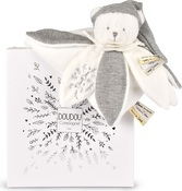 Doudou Darčeková sada Plyšový muchláčik medvedík s čiapočkou 25 cm sivý