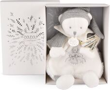 Plyšový muchláčik medvedík je ideálnym darčekom pre deti už od narodenia. Medvedík má na hlave roztomilú šedú čiapočku a mäkké biele labky, ktoré vyzerajú, ako by mal na nôžkach maličké papučky. Pod krkom má biely golier a na brušku nájdete jemnú šedú výšivku značky Doudou, ktorá podčiarkuje jeho nežný vzhľad. Vďaka jemným, trendovým farbám a kvalitným, hebkým materiálom je ideálny pre malé deti, ktorým prináša pocit bezpečia a pohodlia. Perfektný tip na darček, ktorý poteší a zároveň stimuluje zmysly Vášho bábätka.