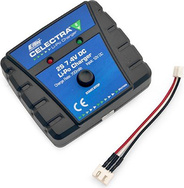 Jednoduchý E-flite nabíjač LiPol batérie 2-články 7.4V, DC 12V, prúd 700mA. Na nabíjanie je nutné nabíjač pripojiť ku vhodnému zdroju 12V. V balení je redukcia konektorov PH - PH 1.5 (Ultra Micro).